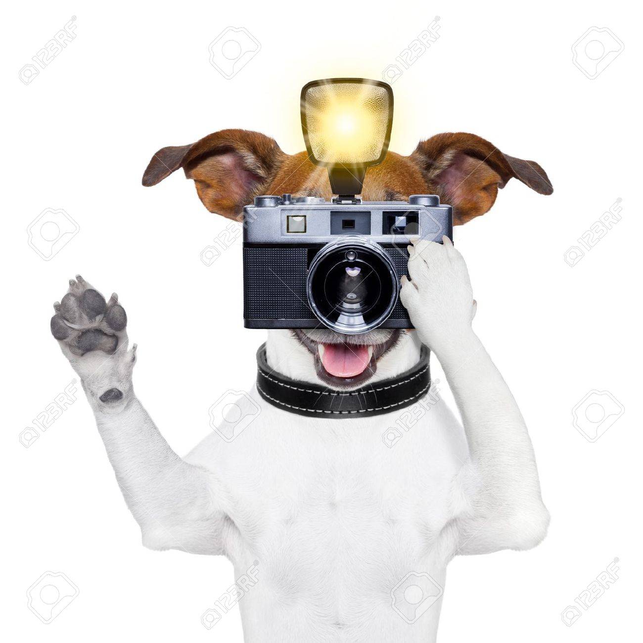 古いカメラとフラッシュの写真撮影の犬 の写真素材 画像素材 Image